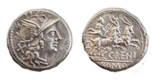 This seemingly irrelevant addition reveals much about the economy, and institutions, of the Roman Republic. Whereas modern America employs the United States Mint, an independent agency under the government, to overrun the minting of coins, ancient Rome offered this enterprise to a group of three men, of whom Caius (or Gaius) Renius was one. These principal moneyers were called the triumviri monetalis, since they worked in the Roman mint at the Temple of Juno Moneta, or “Juno the Advisor”, derived from the Latin verb moneo. Not only might this have contributed to Juno’s placement on the reverse side of the denarius, but her epithet moneta, though it has no direct relation to currency, consequently became the root of the English words “money” and “mint”.